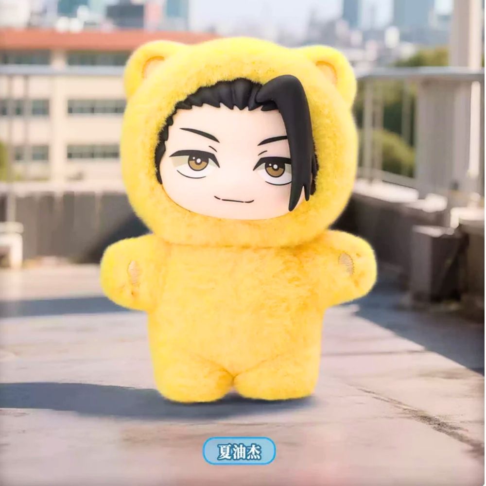 The Suguru Geto plush reimagines the popular Jujutsu Kaisen character in a soft yellow cat onesie. With detailed facial embroidery and smooth touch fabric, it’s a comforting yet collectible plush perfect for display or gifting to anime lovers.